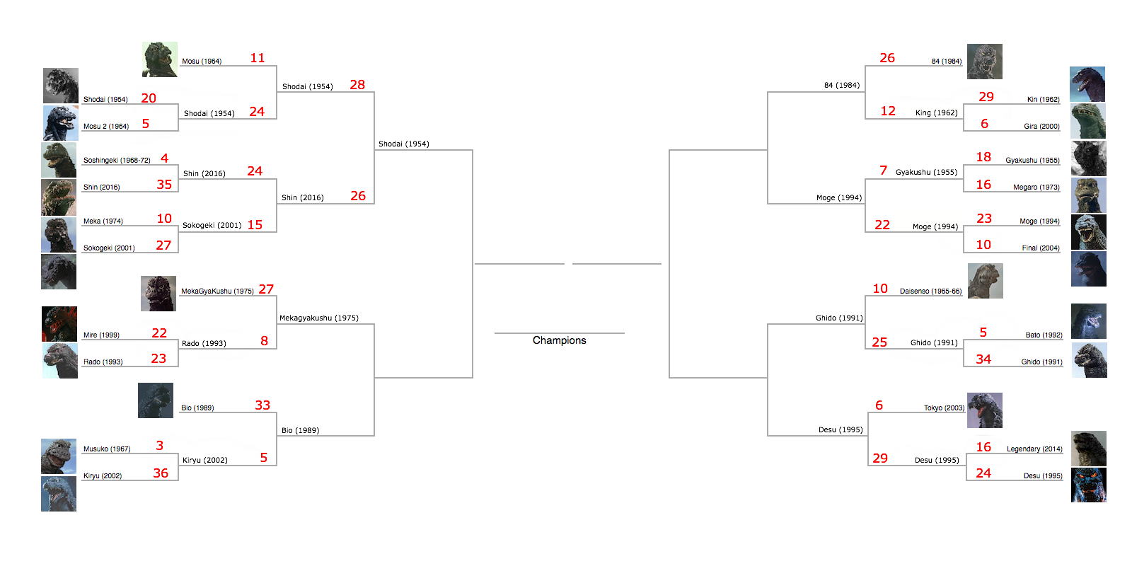 GODZILLA DESIGN TOURNAMENT - Round 20 - 1975 vs. 1989
