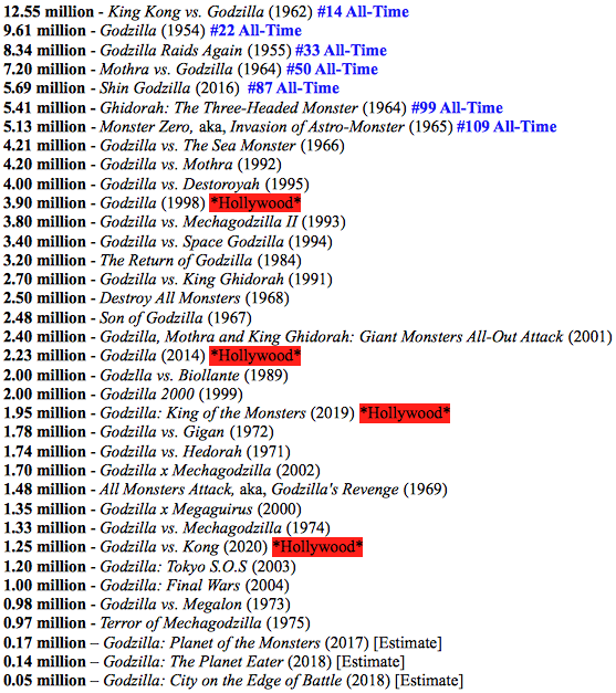 Godzilla Series attendance numbers: