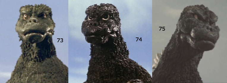 Directed toward the original question, it was relatively rare for a suit in the earlier part of the Showa series to receive primary use in multiple films, so usually every major design shift signified a new suit. MosuGoji was used for both Mothra vs. Godzilla and Ghidorah, the Three-Headed Monster, but its head was replaced between films. The DaisensoGoji suit was used in Invasion of Astro-Monster and Ebirah, Horror of the Deep, but since its head was on loan to Tsuburaya Productions for use as the monster Jirass in Ultraman, Toho had to construct an imperfect replica of its head to film many scenes in its second film appearance. The original DaisensoGoji head is still used in Ebirah, but the lower-quality replica head gets a fair deal of screentime too. I think the replica head is still on the DaisensoGoji for its use as the "stunt suit" in Son of Godzilla and Godzilla vs. Hedorah. SoshingekiGoji was used for four films with minimal alteration, but it's always stuck out to me how its eyes seem to face sideways in Godzilla vs. Hedorah specifically. The MegaroGoji suit, depicted in the diagram Gman posted, had its head changed between films, and is otherwise the same suit. It was also the suit used in Zone Fighter, and looks mostly identical to how it did in Godzilla vs. Megalon.